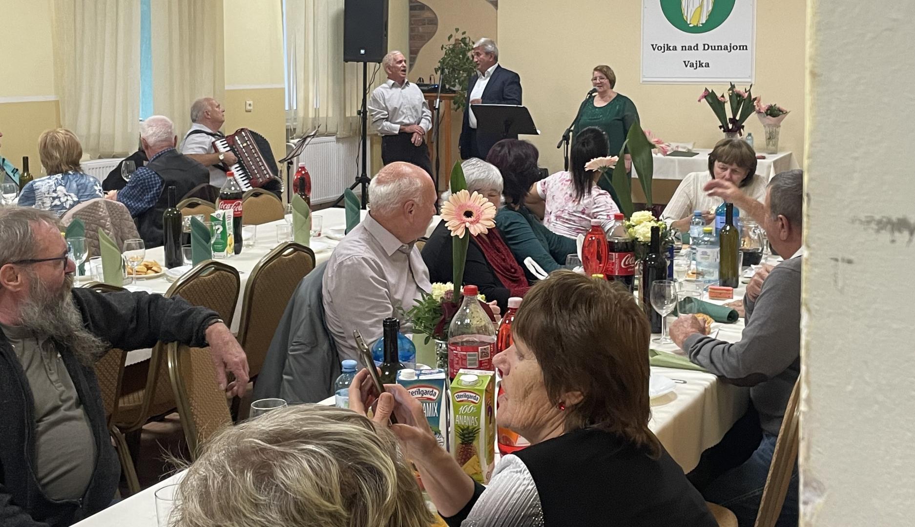 Vďaka získaných finančných prostriedkov od Trnavského samosprávneho kraja v hodnote 1.250,- EUR, naša obec mohla zaobstarať darčekové balíčky - vitamíny pre našich seniorov. O občerstvenie a chutné jedlo sa postarala Samospráva obce a pozvaných hostí zabávali svojimi pesničkami Béla Deák, György Mészáros a Mária Simkó.
